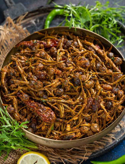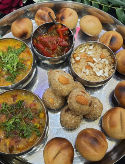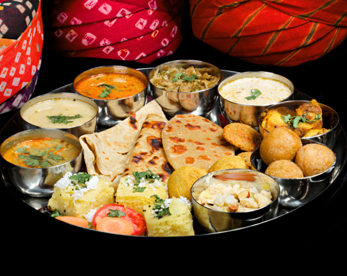 Jaisalmer is known for its authentic Rajasthani dishes such as Dal Baati Churma, Ker Sangri, Gatte ki Sabzi, Laal Maas, and Bajre ki Roti. Street foods like Kachori, Samosa, and Mirchi Vada are also popular.